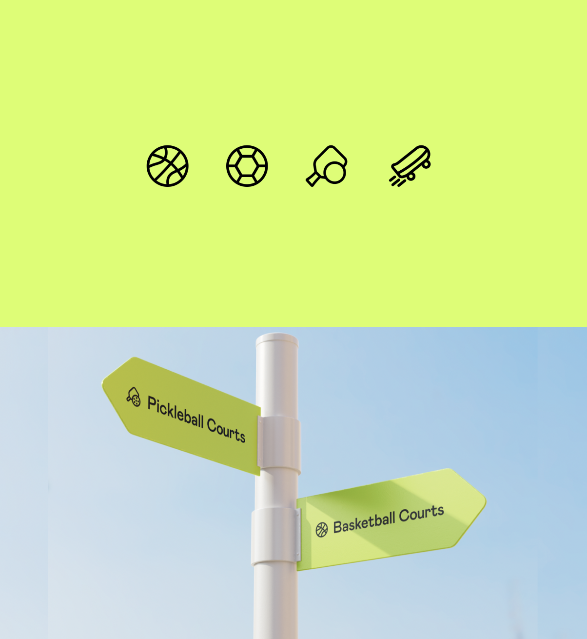 Along with the playful tone, we needed the brand to feel clean and timeless enough so that we could develop a wayfinding system for signs and directions around the park. The bright chartreuse helps you quickly identify directional items, and the clean typography and iconography are extremely legible from afar.
